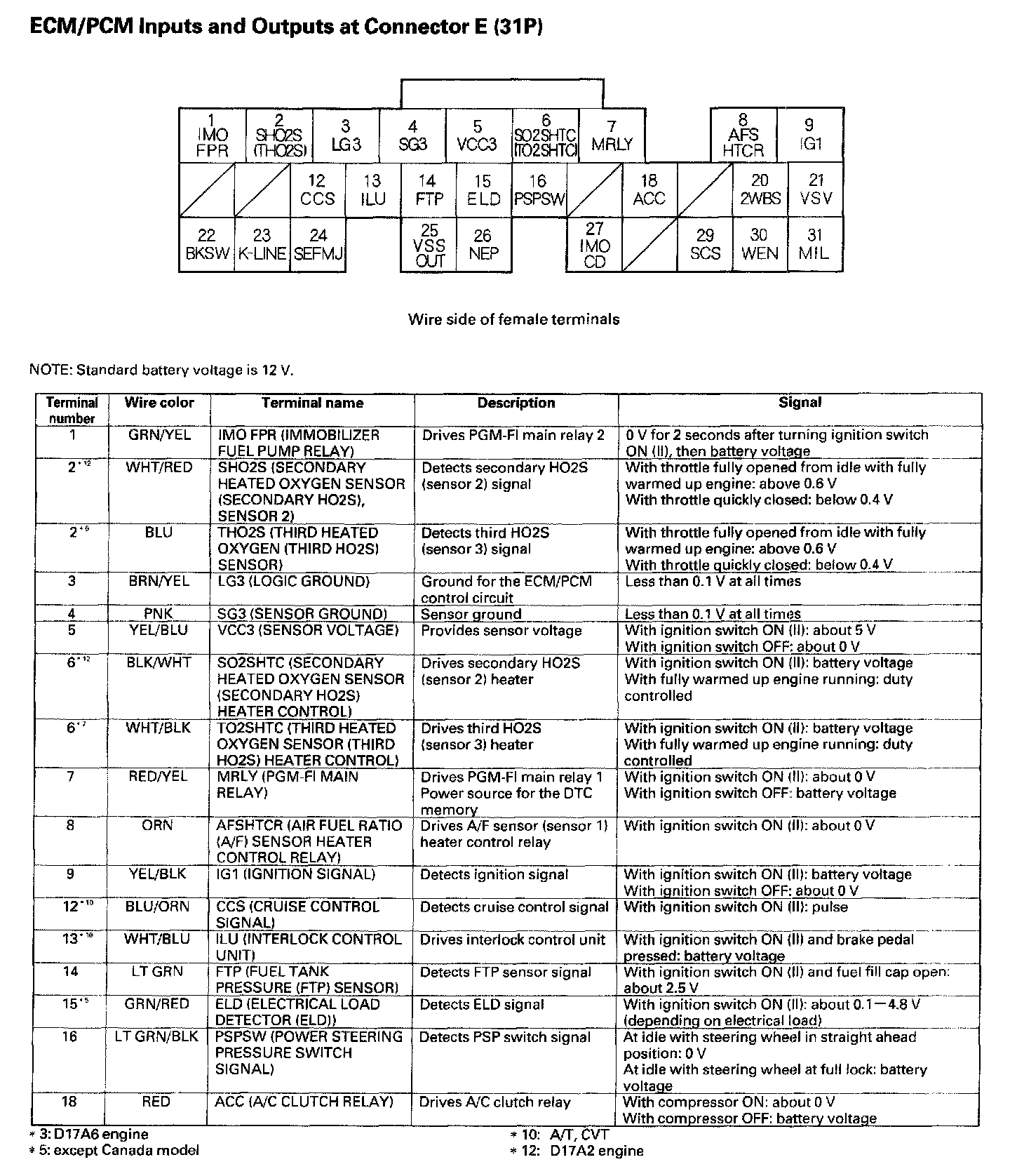 ECM/PCM Inputs And Outputs At Connector E (31P) Part 2: