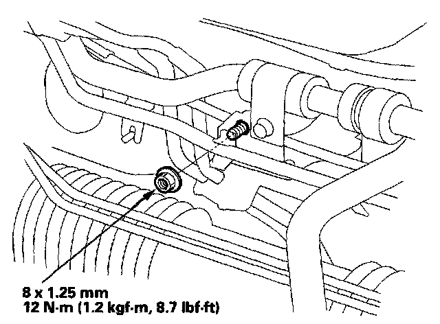 8. Remove the mounting nut from the heater unit. Take care not to damage or bend the fuel lines and the brake lines, etc.
