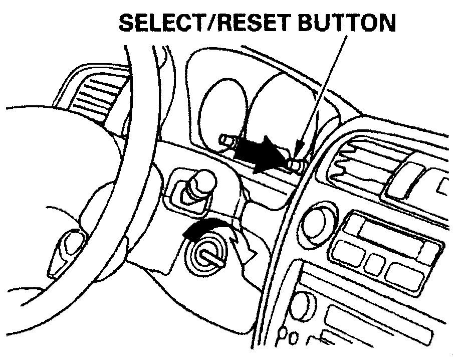 2. Press and hold the Select/Reset button in the instrument panel, then turn the ignition switch ON (Position II).
