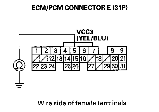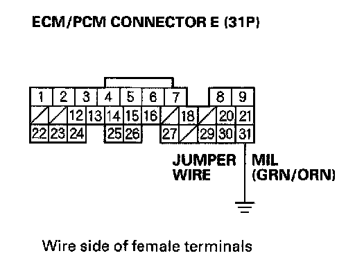 12. Connect ECM/PCM connector terminal E31 to body ground with a jumper wire.