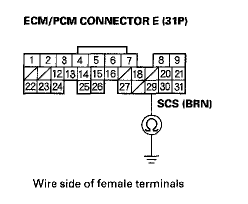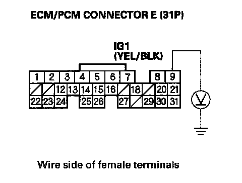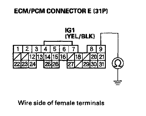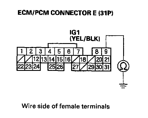 25. Check for continuity between ECM/PCM connector terminal E9 and body ground.
