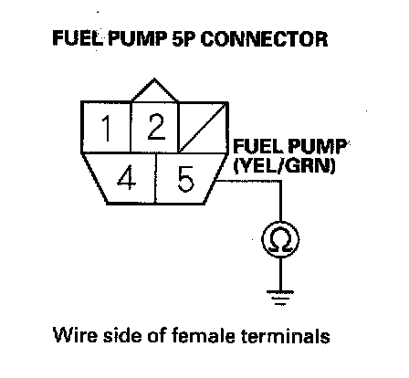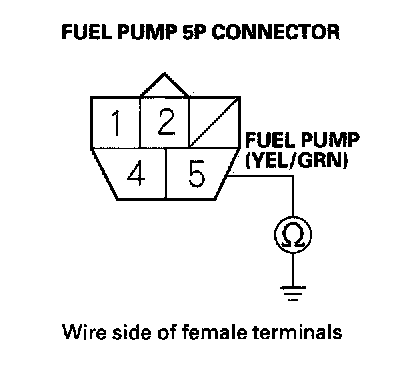 33. Check for continuity between fuel pump 5P connector terminal No.5 and body ground.