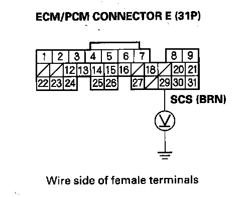 76. Measure voltage between ECM/PCM connector terminal E29 and body ground.