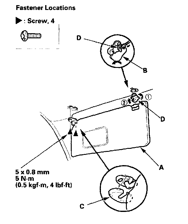 2. Remove the sunvisor (A) and holder (B) from both sides.