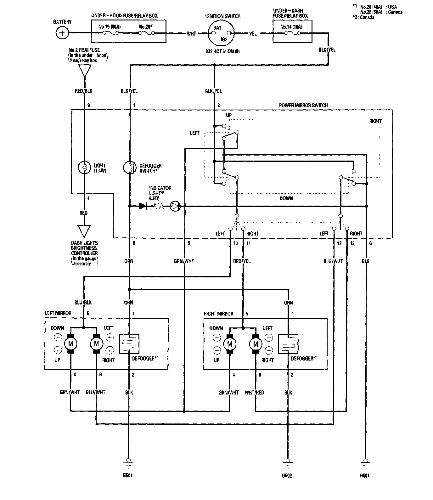 Power Mirrors - Circuit Diagram: