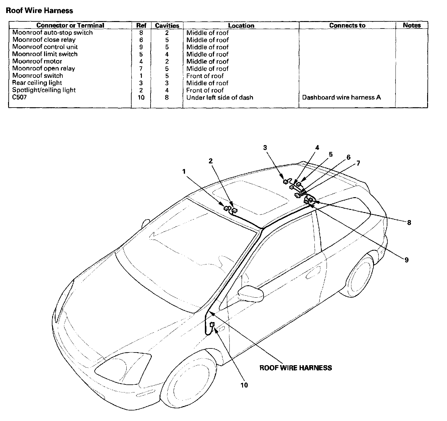 Roof Wire Harness: