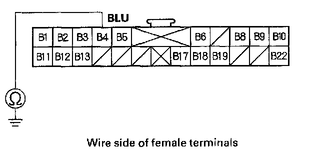 7. Check for continuity between the gauge assembly connector B (22P) No. 4 terminal and body ground.