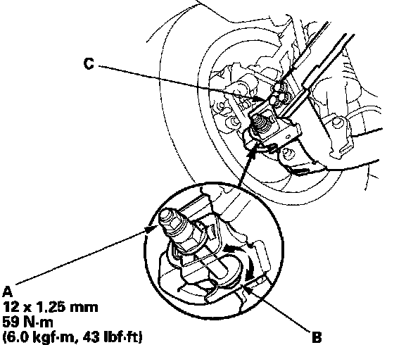 NOTICE: Do not loosen the special bolts (C) on the lower arm to adjust the alignment.