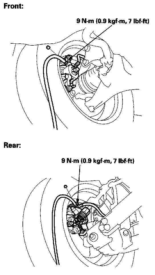 4. Starting at the left-front, loosen the brake bleeder screw to allow air to escape from the system. Then tighten the bleeder screw securely.