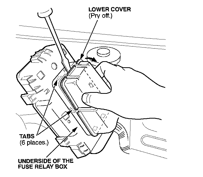 4. Release the three clips, and remove the under- hood fuse/relay box from the holder.