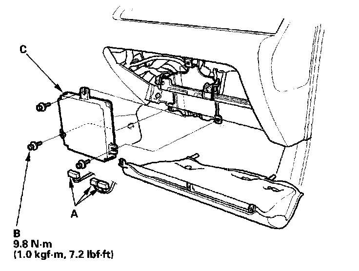1. Remove the passenger's dashboard lower cover, the passenger's kick panel, and the glove box.