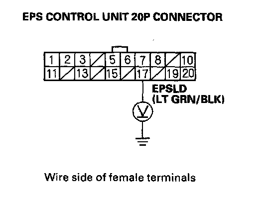 9. Measure voltage between EPS control unit terminal No.17 and body ground.