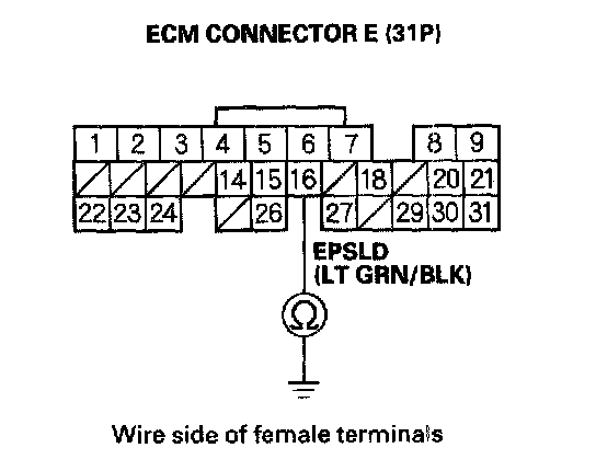 16. Check for continuity between body ground and ECM connector terminal E16.