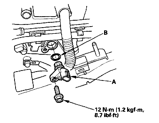 4. Install the sensor in the reverse order of removal with a new O-ring (B).