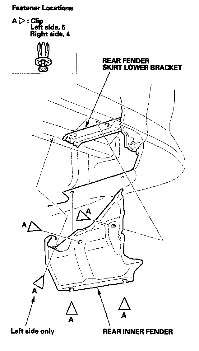 Rear Inner Fender ReplacementNOTE: Take care not to scratch the body.
