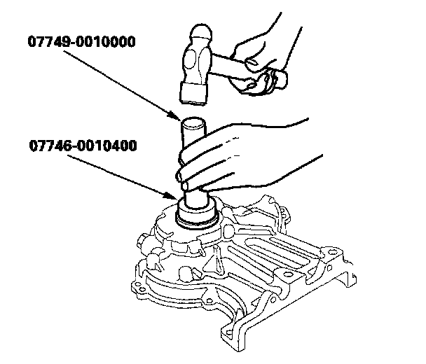 8. Use the special tools to install a new oil seal. Drive the seal until the special tool bottoms on the oil pump.