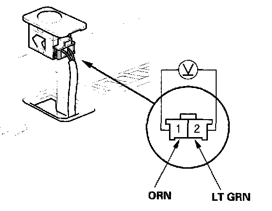 Sunlight Sensor TestTurn the ignition switch ON (II). Measure the voltage between the terminals with the (+) probe on the No. 1 terminal and the (-) probe on the No. 2 terminal with the 2P connector connected. The voltage reading will not change under the light of a flashlight or a fluorescent lamp. Voltage should be: