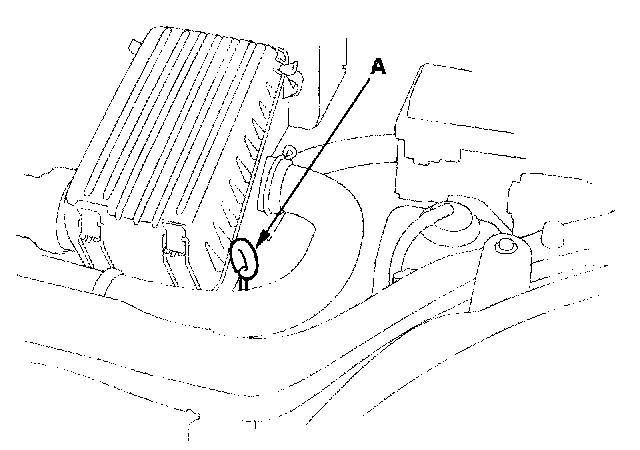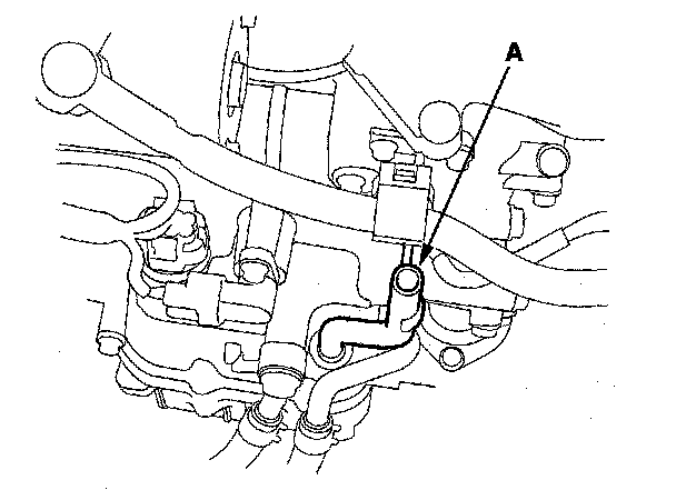 8. Pour the recommended fluid into the opening of the dipstick pipe (A) to bring it to the upper mark. Always use genuine Honda ATF-Z1 Automatic Transmission Fluid (ATF). Using a non-Honda ATF can affect shift quality.