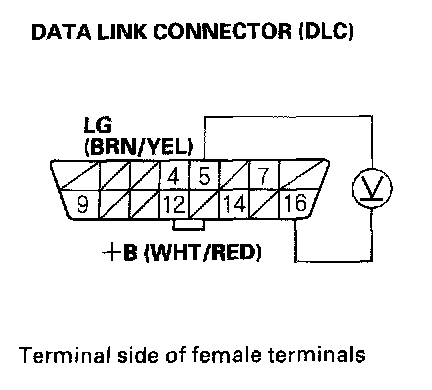 3. Measure voltage between DLC terminals No.5 and No.16.