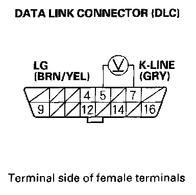 13. Measure voltage between DLC terminals No.5 and No.7.