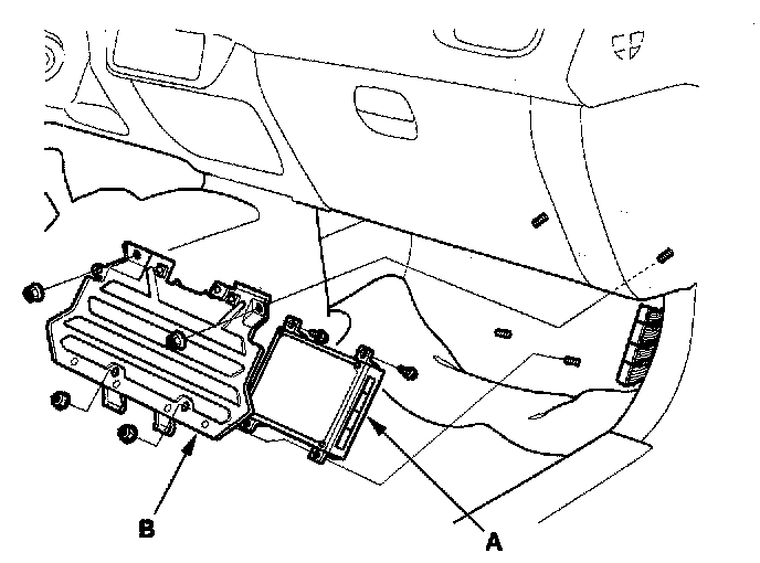 4. Pull the passenger's side carpet back to expose the ECM (A).