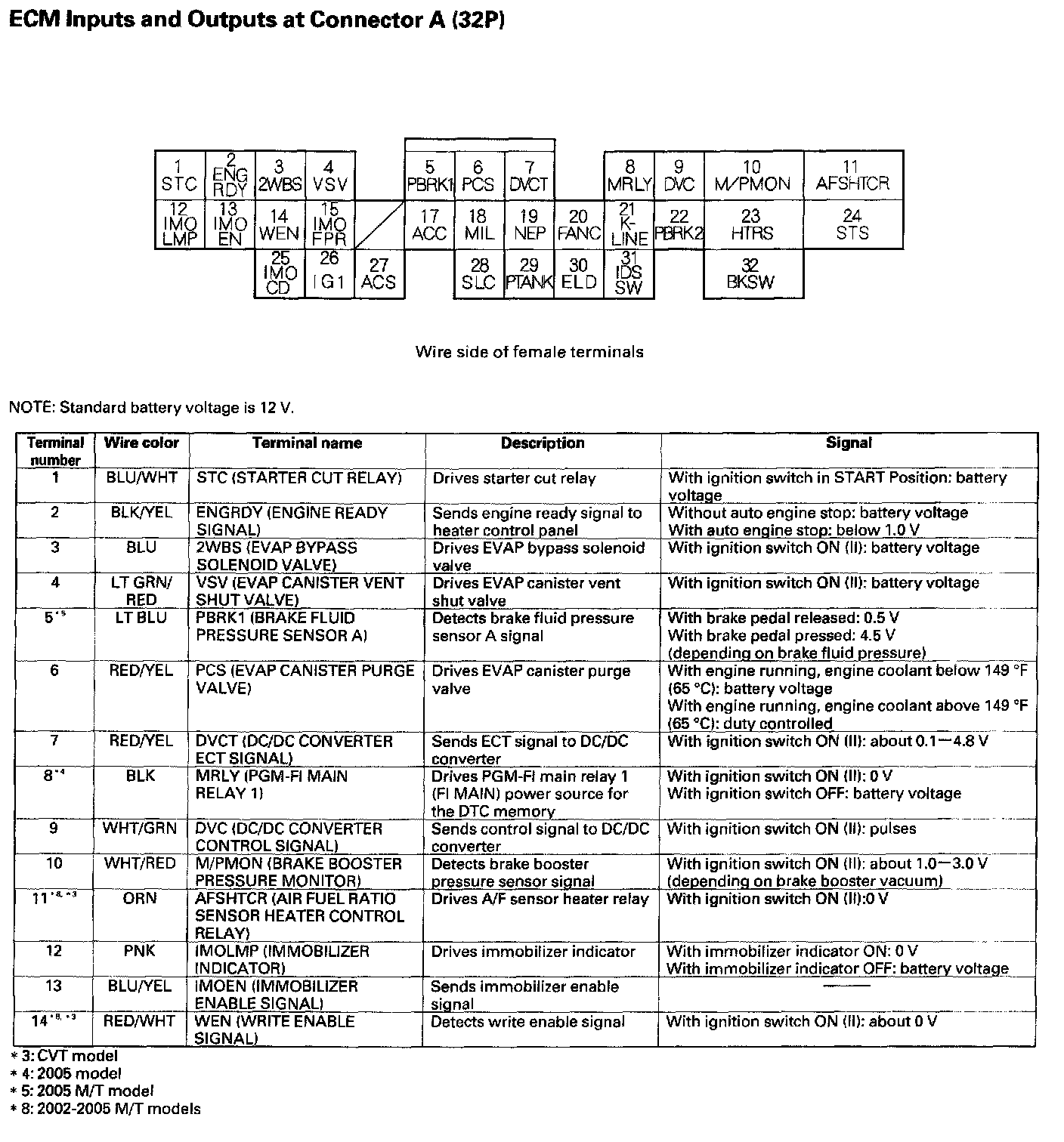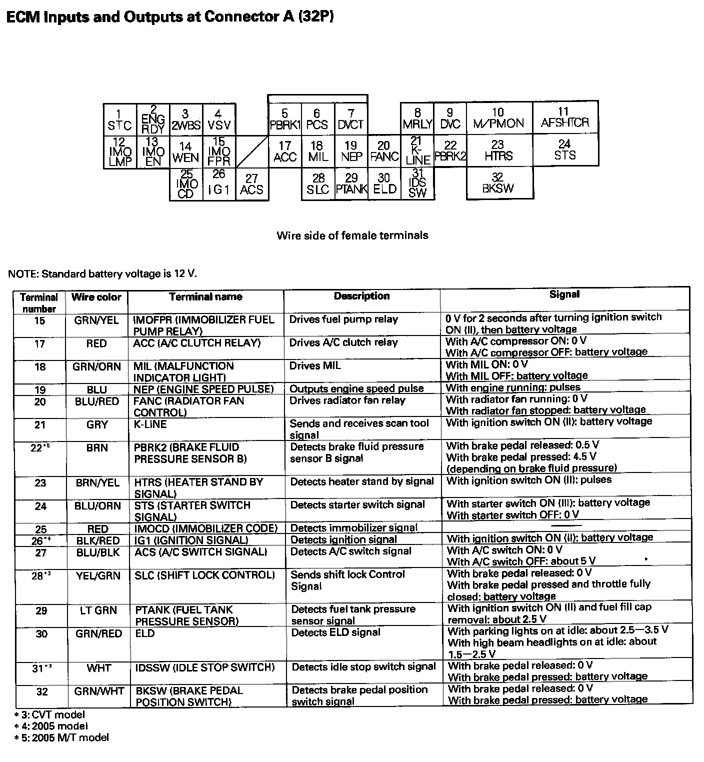 ECM Inputs And Outputs At Connector A (32P):