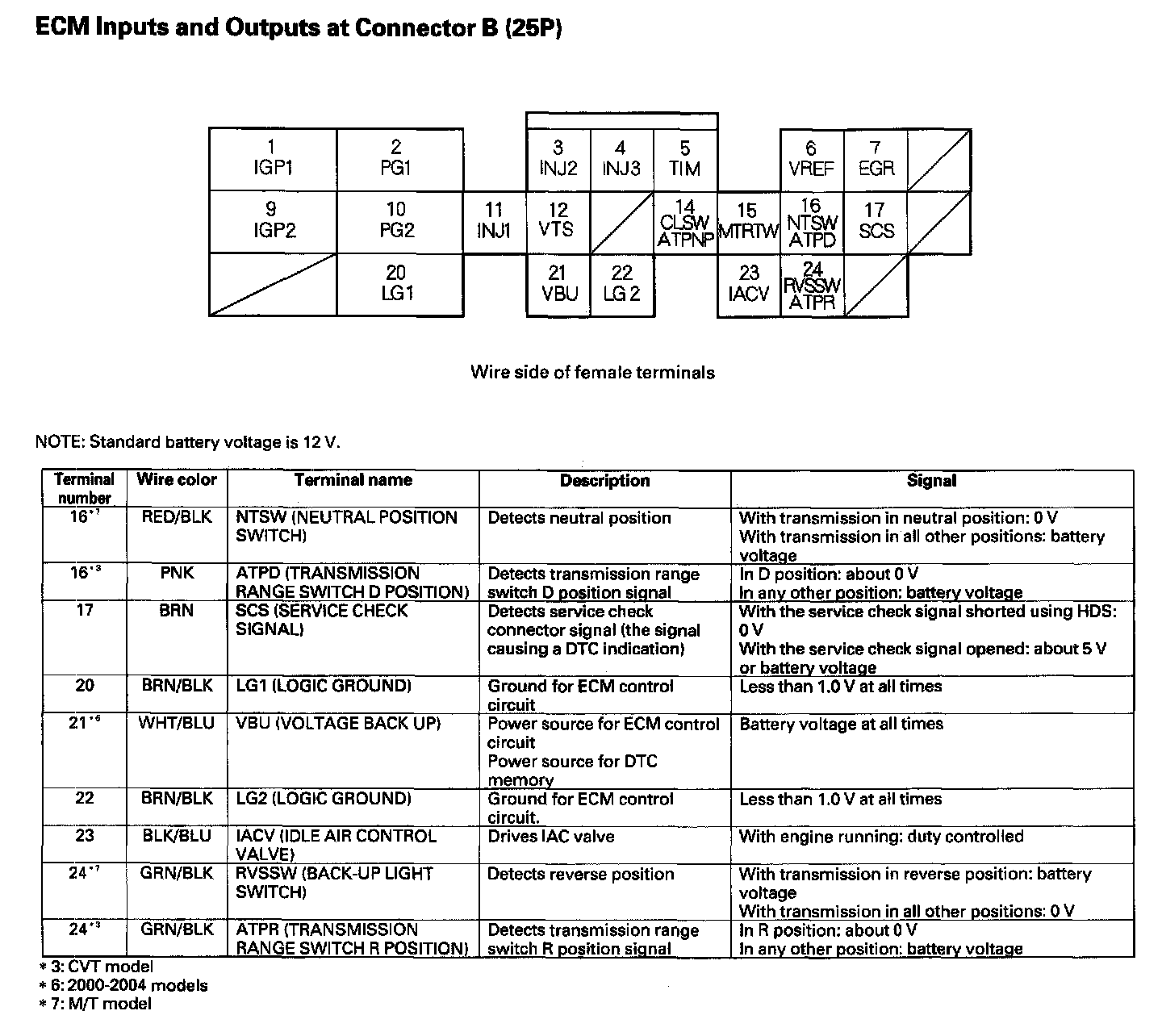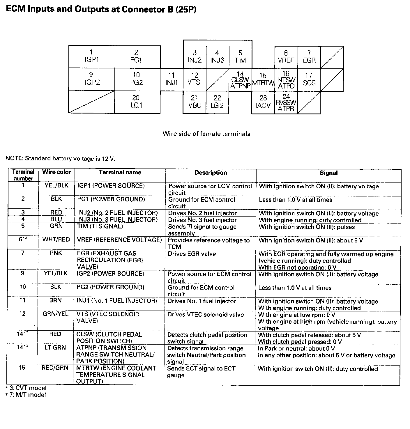 ECM Inputs Outputs At Connector B (25P):