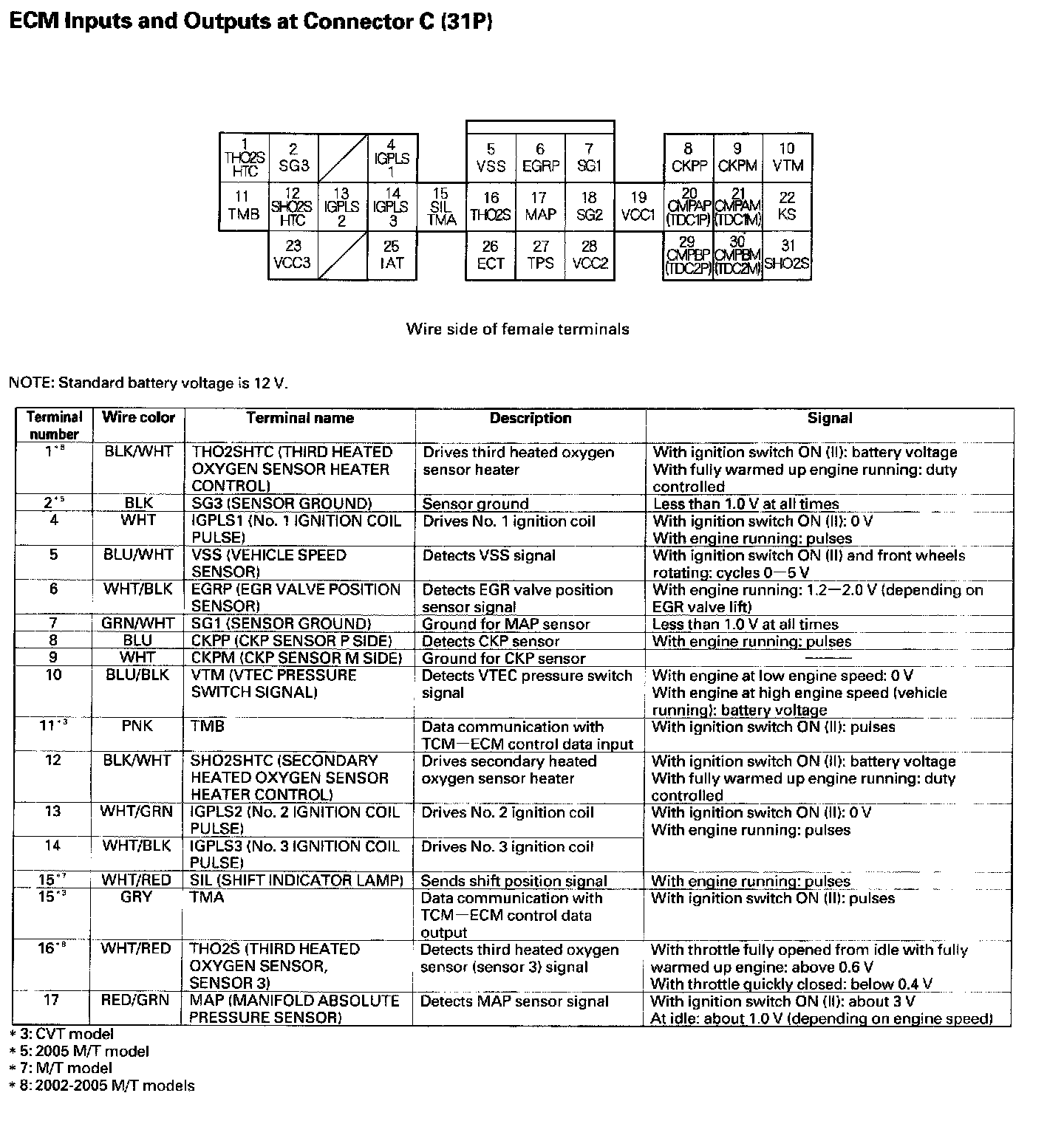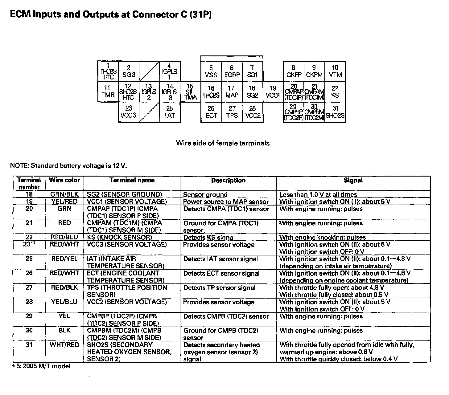 ECM Inputs And Outputs At Connector C (31P):