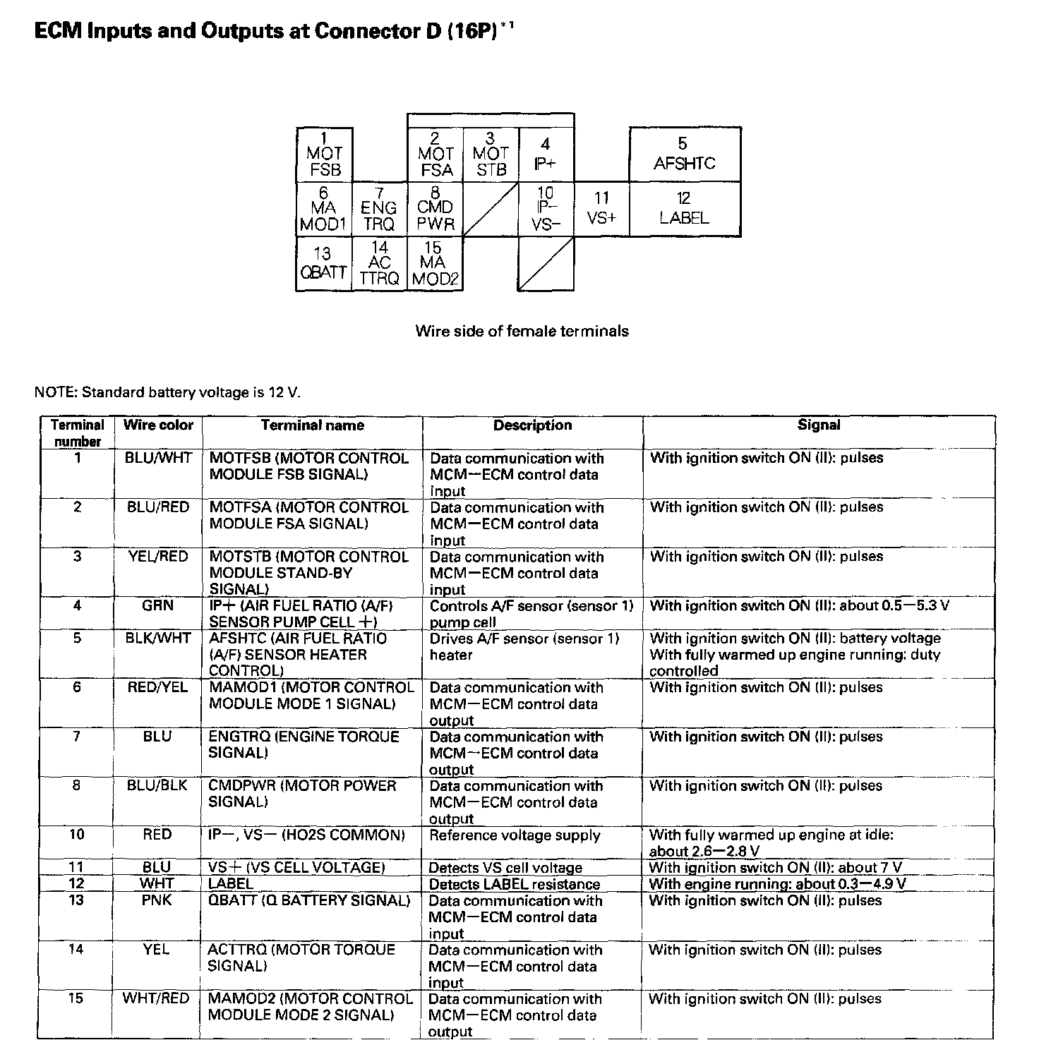 ECM Inputs And Outputs At Connector D (16P):