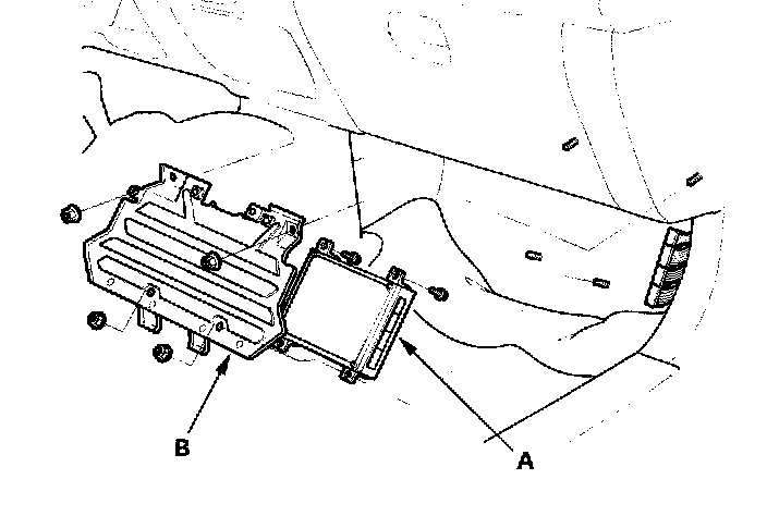 4. Pull the passenger's side carpet back to expose the ECM (A).