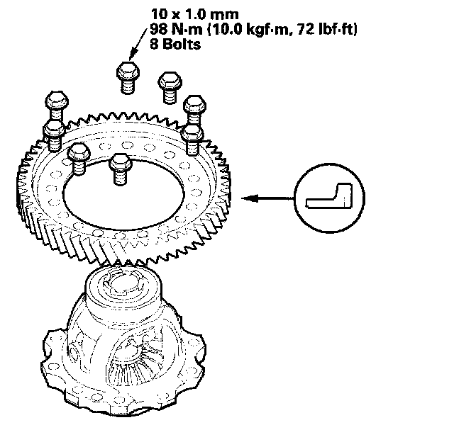 1. Remove the final driven gear from the differential carrier. The final driven gear bolts have left-hand threads.