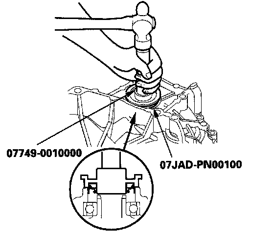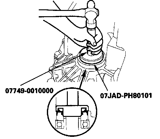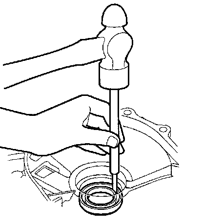 3. Install the new oil seal in the transmission housing with the special tools.