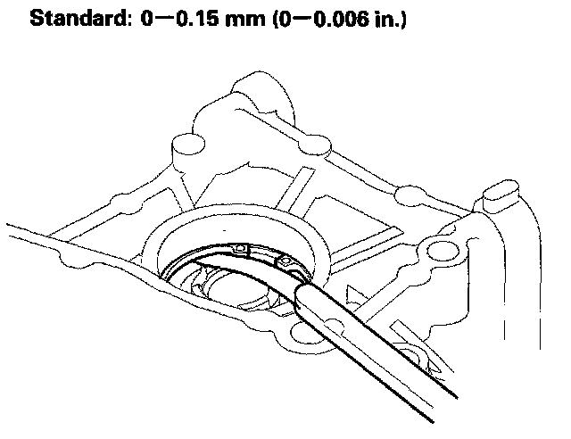 6. Measure the clearance between the set ring and carrier bearing outer race with a feeler gauge.