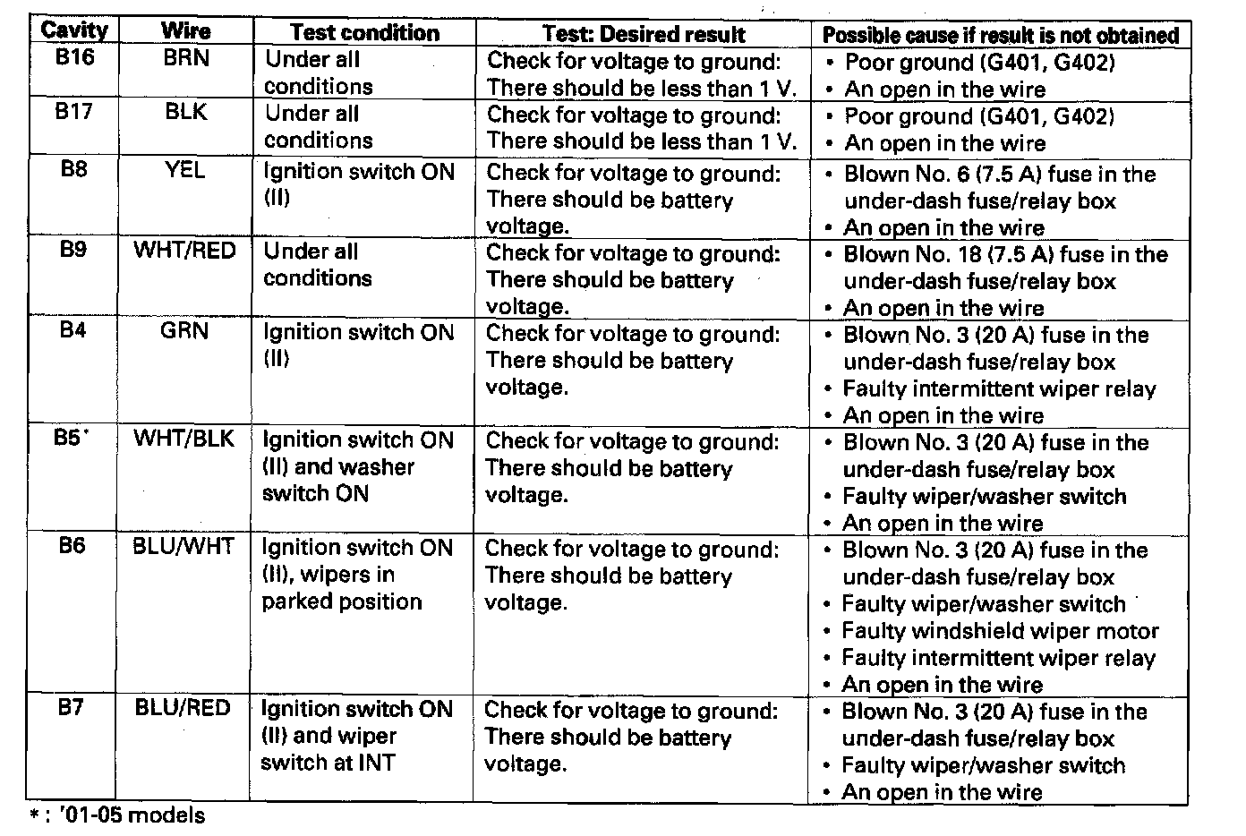 Wiper Control Module: Testing and Inspection