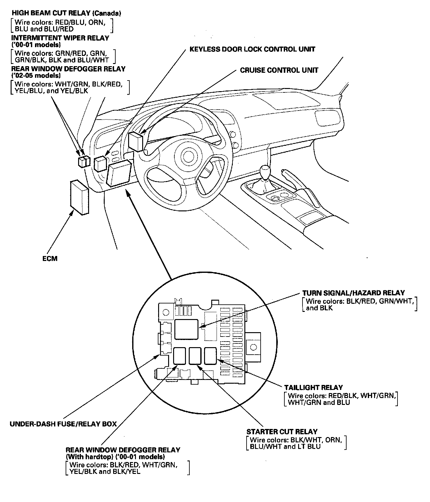 Relay And Control Unit Locations - Dashboard And Door: