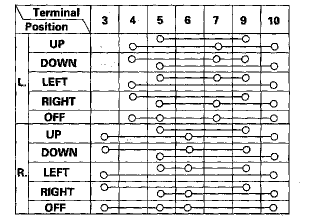 3. Check for continuity between the terminals in each switch position according to the table.