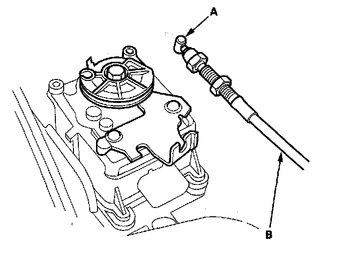 2. Disconnect the actuator cable end (A), and remove the cable (B) from the cruise control actuator.
