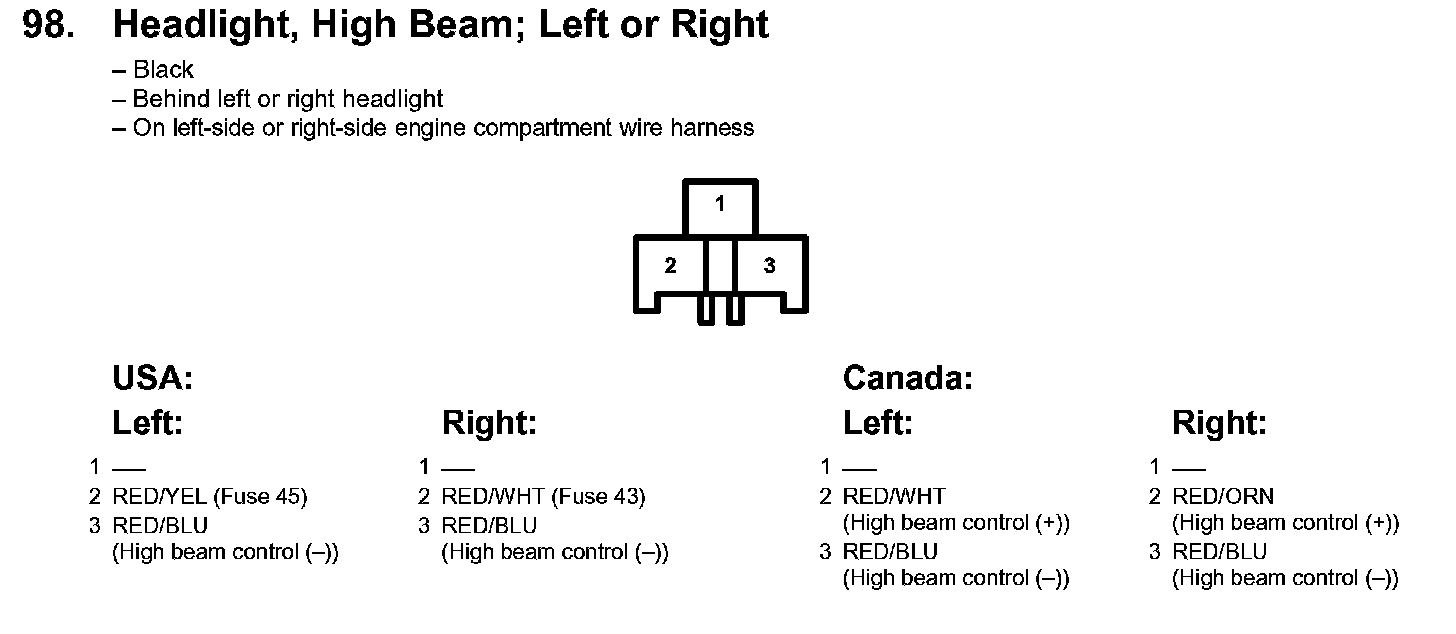 98. Headlight, High Beam; Left Or Right: