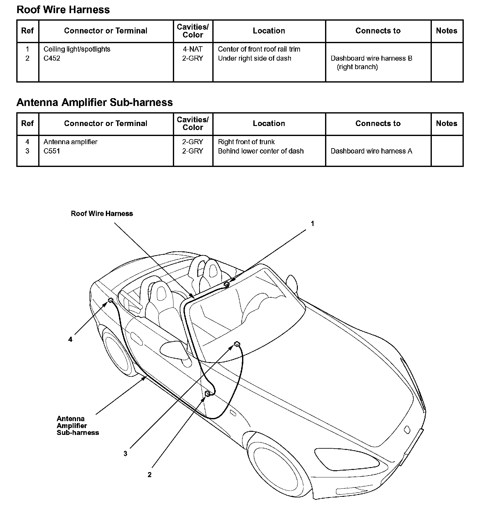 Roof Wire Harness/Antenna Amplifier Sub-harness: