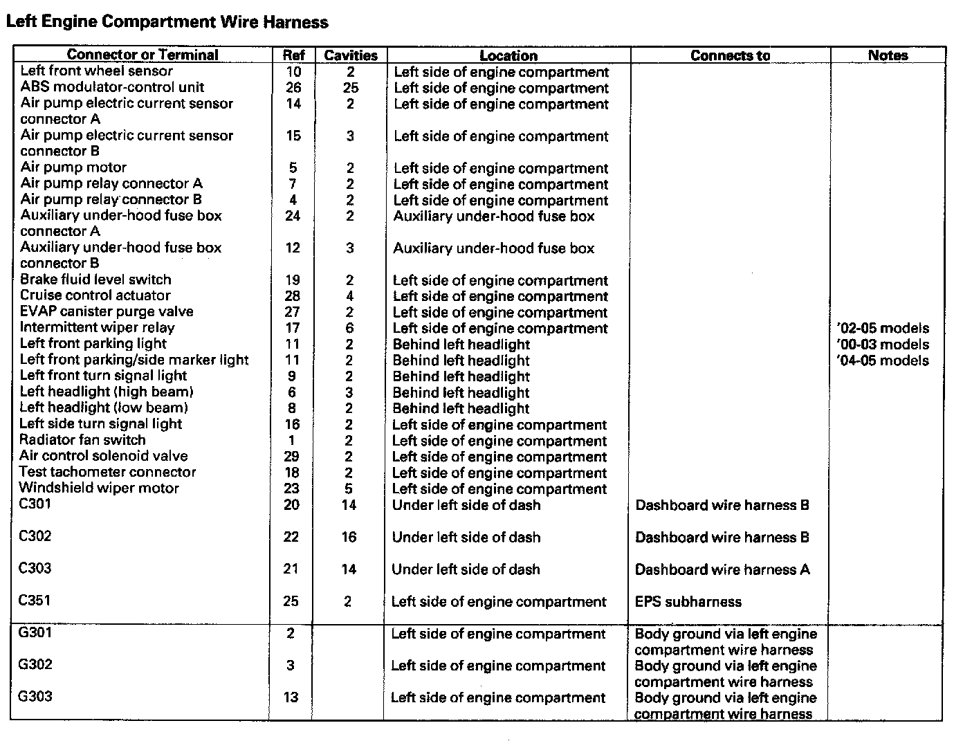 Left Engine Compartment Wire Harness: