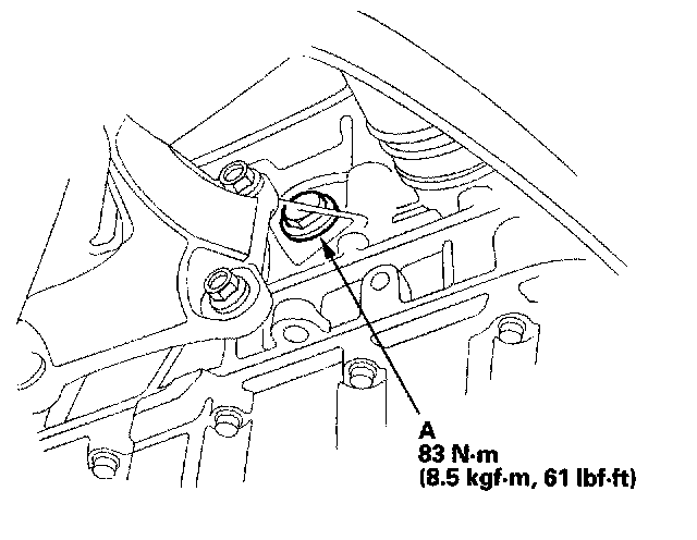 4. Remove the drain bolt (A) from the right side of the engine block.