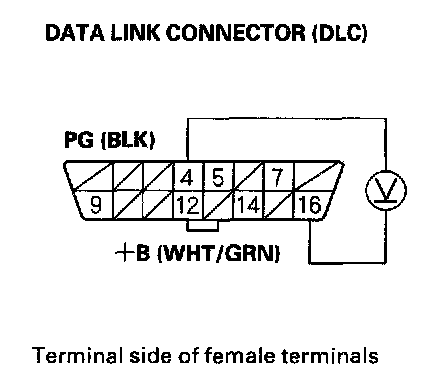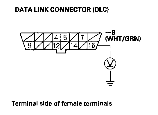 3. Measure voltage between DLC terminals No. 5 and No.16.