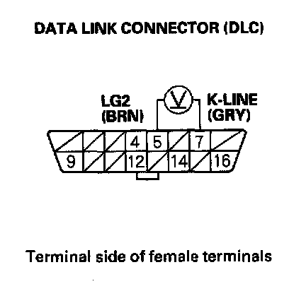 13. Measure voltage between DLC terminals No. 5 and No. 7.
