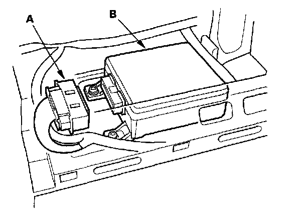 4. Disconnect the SRS unit 18P connector (A) from the SRS unit (B).