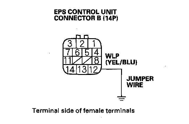 10. Connect EPS control unit connector B (14P) terminal No. 12 and body ground with a jumper wire.