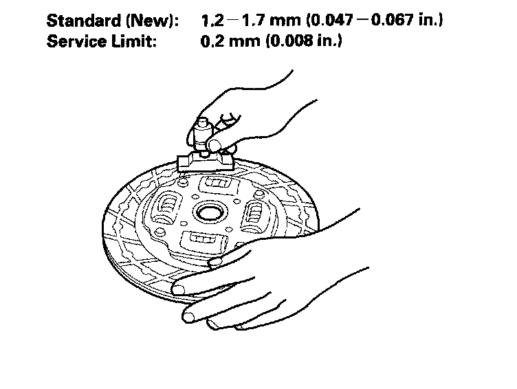10. Measure the clutch disc thickness. If the thickness is less than the service limit, replace the clutch disc.
