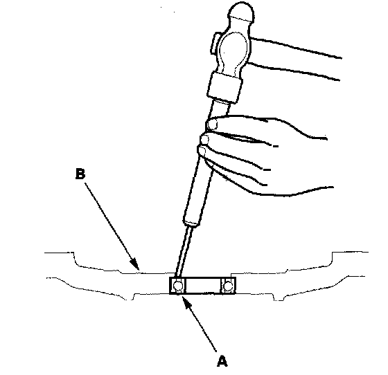 3. Remove the ball bearing (A) from the flywheel (B).