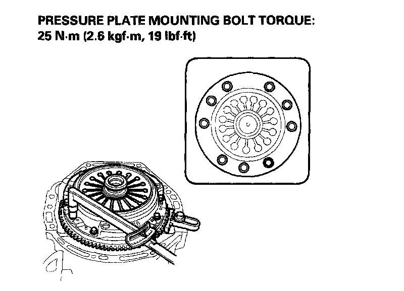 6. Torque the mounting bolts in a crisscross pattern. Tighten the bolts in several steps to prevent warping the diaphragm spring.