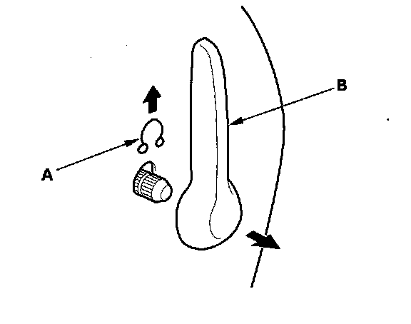 6. If equipped with a lumbar support, remove the clip (A), then remove the lumbar support handle (B).