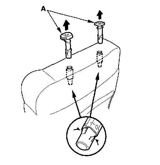 12. Pull out the headrest guides (A) while pinching the tabs on the ends of the guides, and remove them.